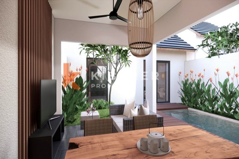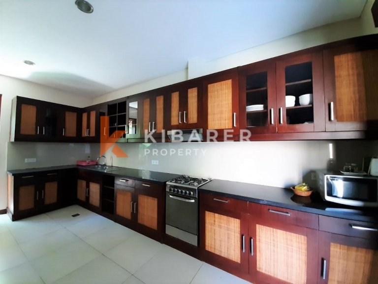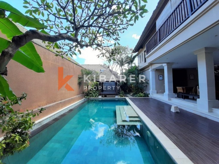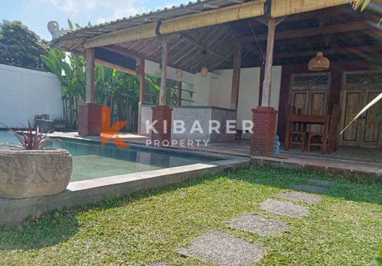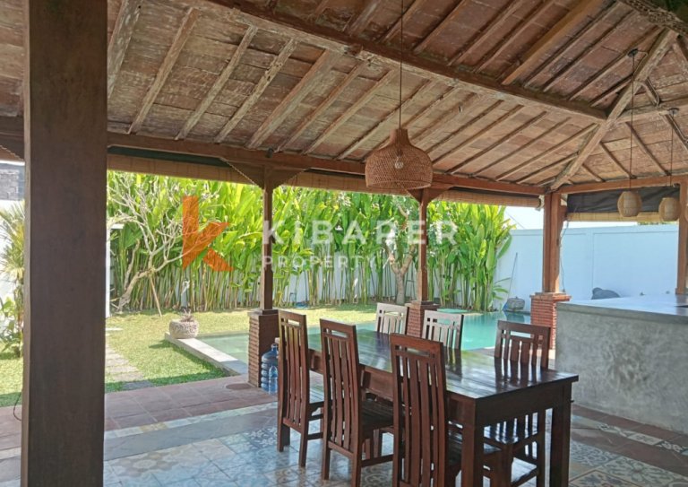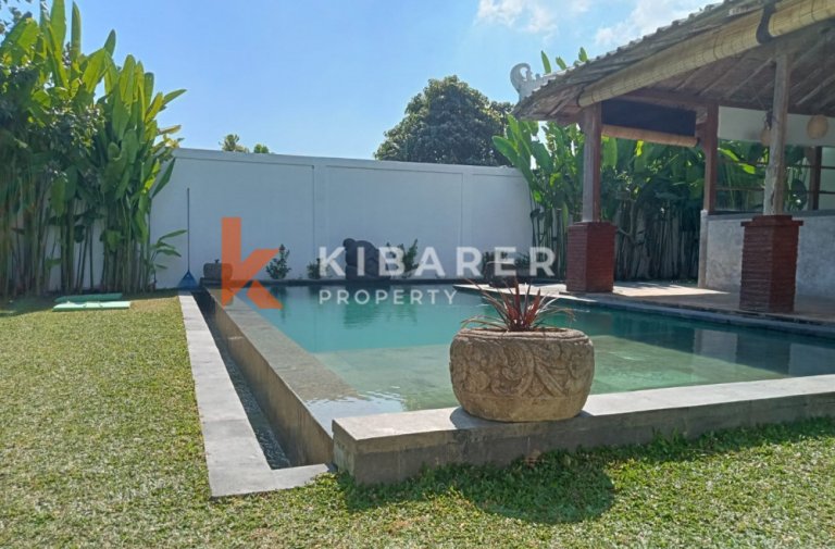 Nichée dans le quartier serein de Munggu, cette spacieuse villa non meublée s'étend sur 400 m² de terrain et dispose de 200 m² d'espace de vie soigneusement conçu. Avec trois chambres, chacune équipée d'une salle de bain privée avec douche sur pied, cette villa offre confort et intimité. Le salon fermé se connecte parfaitement à la salle à manger et à la cuisine, créant une atmosphère accueillante pour les réunions de famille. Sortez pour profiter de la piscine de 3 x 8 mètres et du vaste jardin, parfaits pour se détendre ou recevoir des invités. Les équipements supplémentaires comprennent une salle de stockage, un forage d'eau de puits et une solide capacité électrique de 7 700 kVA. Restez connecté avec une connexion Wi-Fi fiable et profitez de la flexibilité d'autoriser les animaux de compagnie et de sous-louer. Cette propriété comprend un espace de stationnement pour une voiture et des motos et est disponible en location annuelle uniquement.