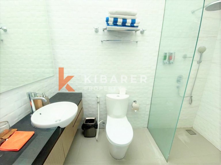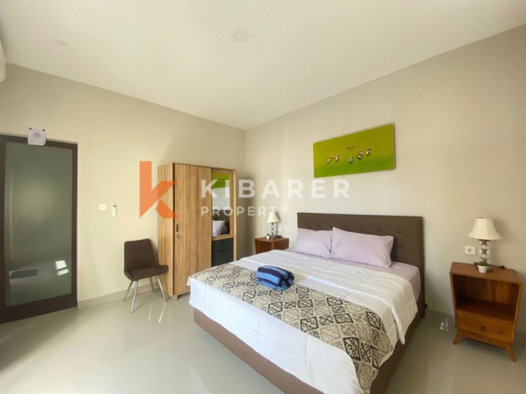 Cette propriété confortable est entièrement meublée, elle a été construite sur un terrain de 1,5 ares. Bénéficiant de deux chambres avec salle de bains privative complète avec armoire et climatisation. Le salon et la salle à manger sont fermés, ils offrent également une cuisine entièrement équipée avec un micro-ondes, ils disposent d'un lave-linge pour votre linge personnel. L'électricité utilise un jeton, le Wifi atteint 75 Mbps, la sécurité CCTV et un parking sont disponibles pour les motos.
