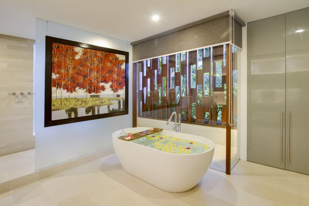 Cette villa située dans le quartier de Kaba-Kaba, se trouve à seulement 10 minutes de la plage de Pererenan, à 20 minutes du quartier branché de Batu Bolong, à 30 minutes de Seminyak et à 20 minutes de Tanah Lot. Cette villa de 5 chambres est construite dans un style méditerranéen sur 10,7 ares (1 070 m²). Elle se compose de 5 chambres et d'une chambre de service, de 4 salles de bains (une chambre principale avec salle de bains, deux chambres partageant une salle de bains et une salle de bains pour le salon général). Cette propriété est entièrement meublée. Elle dispose d'un salon ouvert, de 2 cuisines fonctionnelles dans la villa, d'une piscine, d'un grand jardin, d'une salle de sport privée, d'un billard, du Wifi, de la climatisation, d'un garage (pour 2 voitures et 7 motos ou plus), d'un belvédère à l'étage, d'une vue sur le coucher de soleil depuis le 2ème étage et d'une vue imprenable sur les rizières au 2ème étage.