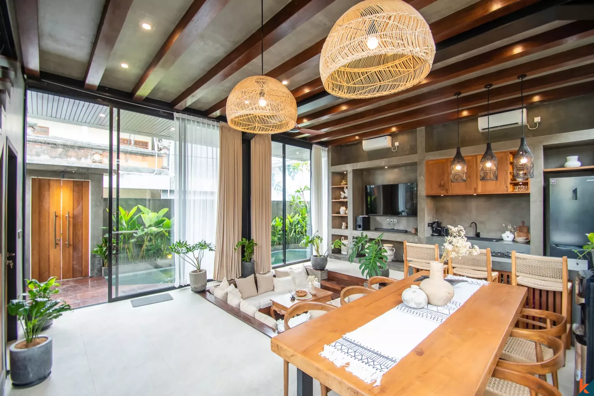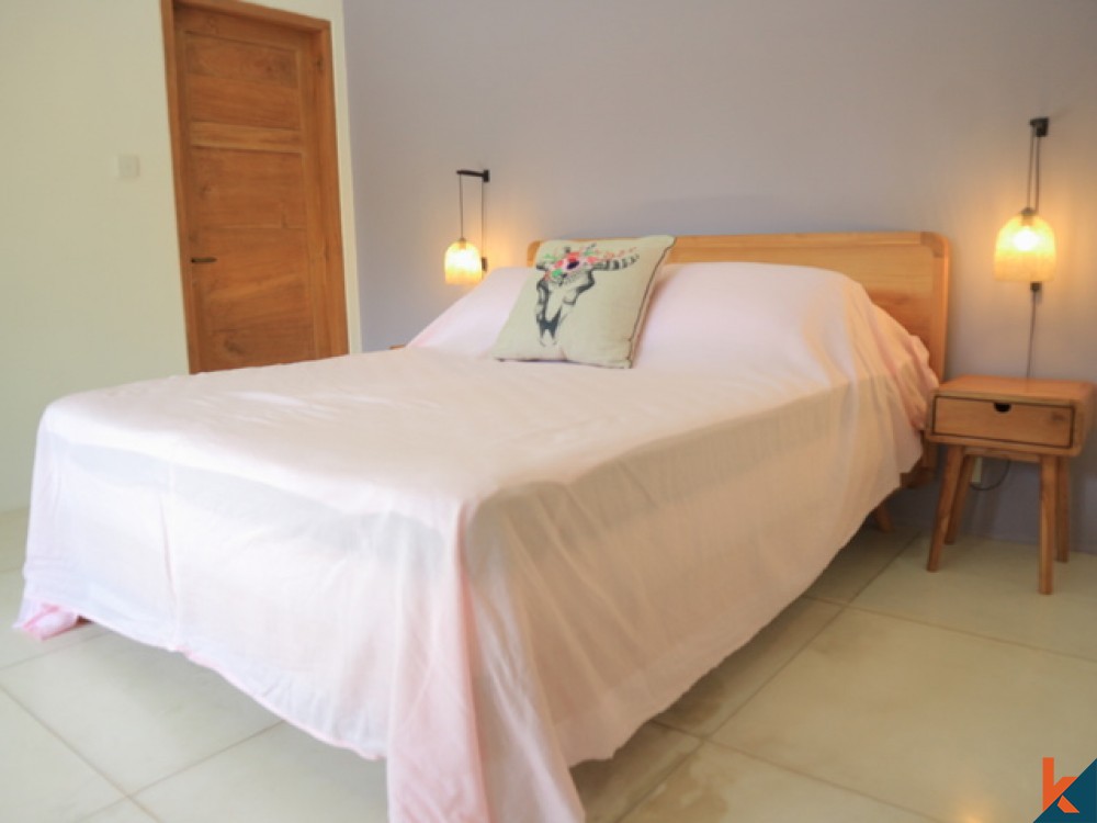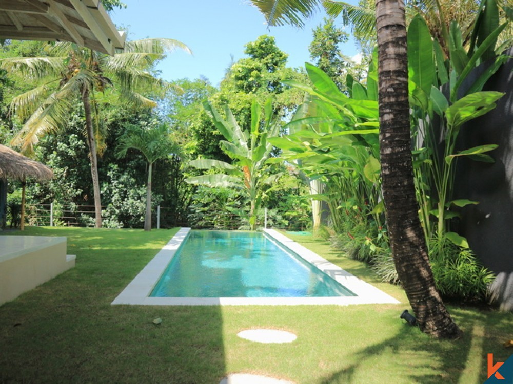 Cette belle villa à bail située dans un quartier calme et paisible de Dalung, offre trois chambres avec trois salles de bains, une toilette pour invités, dispose d'une piscine privée mesurant 12x3 mètres et constitue l'endroit idéal pour prendre un bain rafraîchissant et profiter du soleil avec un jardin environnant. Offrez un étage sur deux niveaux avec un salon spacieux et un coin cuisine entièrement équipé. Offrez un espace sur le toit avec un coin salon pour détendre votre journée. La villa dispose également d'un espace de stationnement pour 1 voiture et 3 motos, garantissant que les clients peuvent facilement aller et venir à leur guise. Dans l'ensemble, cette villa est une combinaison parfaite de beauté moderne et naturelle, également idéale pour un excellent investissement. Cette villa offre 2 unités avec le même design et les mêmes agencements.