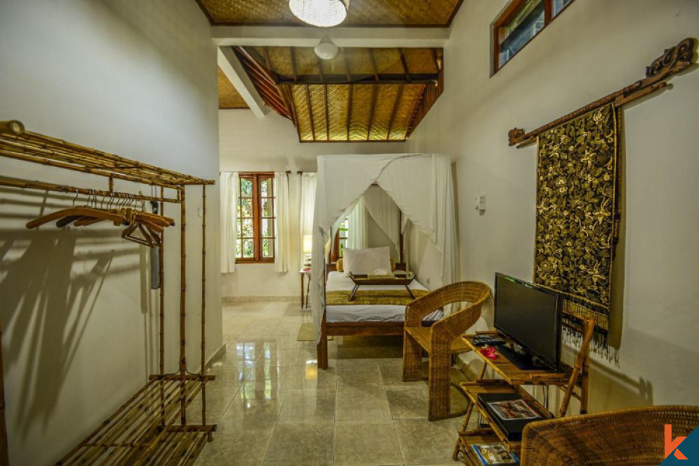 Real estate hak milik yang indah dengan tanah luas ini terletak di daerah yang tenang di Karangasem. Resor ini menawarkan pilihan dari lima bangunan yang sangat unik, masing-masing dibangun dengan gaya tradisional namun dengan segala kenyamanan modern, memiliki 8 kamar tidur en-suite yang luas, nyaman, dan nyaman dengan kamar mandi artistik. Ini berperabotan lengkap dan didekorasi dengan selera tinggi yang memberikan kemewahan dan kenyamanan yang apik sesuai keinginan Anda. Properti ini dengan murah hati menawarkan 2 tingkat, 8 unit AC, ruang tamu luas, ruang makan luas, 2 restoran, kantor, spa, kolam renang, gazebo, penyimpanan, sumber air dari PDAM, listrik 3 x, internet, saluran telepon, dan ukuran yang bagus area parkir, keamanan. Sanggraloka terus menawarkan lingkungan bagi Anda untuk bersantai dan menikmati. Ini memang salah satu peluang investasi terbaik yang tersedia untuk dijual di daerah yang indah di Bali. Ideal untuk dibeli sebagai investasi yang dapat diubah menjadi rumah sewa liburan. Beberapa menit dari pantai dan hampir 30 menit berkendara ke pelabuhan Padangbai.