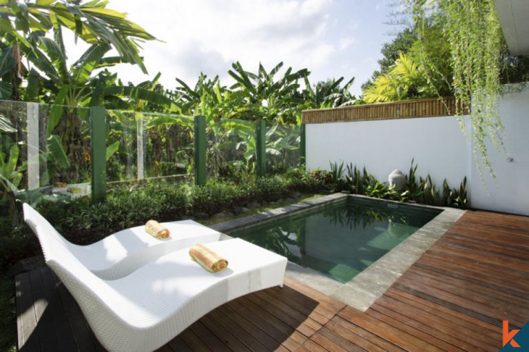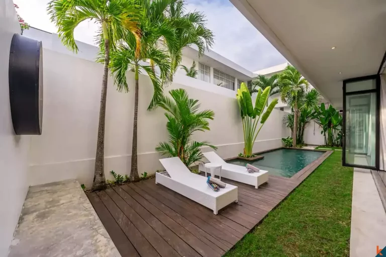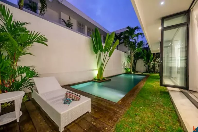 Properti hak milik modern yang nyaman ini terletak di lingkungan yang tenang di Berawa. Vila artistik ini memiliki 2 kamar tidur yang luas, nyaman, bergaya dan nyaman dengan 2 kamar mandi yang indah. Kamar ini berperabotan lengkap dan didekorasi dengan selera tinggi dengan perabotan dan interior mahal yang memberikan kemewahan luar biasa dan perasaan seperti di rumah yang nyaman.
