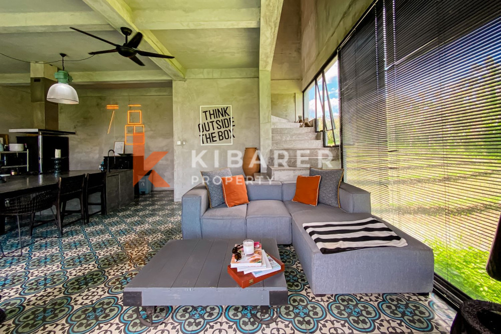 Saat Anda masuk ke dalam, Anda akan menemukan ruang tamu tertutup indah yang terhubung dengan alam terbuka dengan kolam renang pribadi melalui pintu kaca geser. Properti ini memiliki pemandangan matahari terbenam di sungai dan sawah, sangat menenangkan dan sesuai dengan kebutuhan Anda.