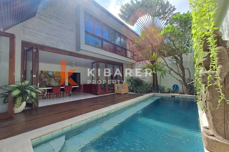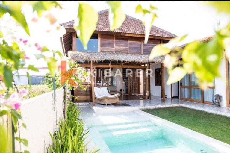 This wonderful two-bedroom villa is ideally situated in a peaceful village just below the vibrant Canggu district. The interiors beautifully blend tropical folkloric elements with a Balinese aesthetic, creating a serene and inviting atmosphere. Set on 1,63 are of land with a 180 sqm building. Both bedrooms are equipped with air conditioning, comfortable beds, and ensuite bathrooms.