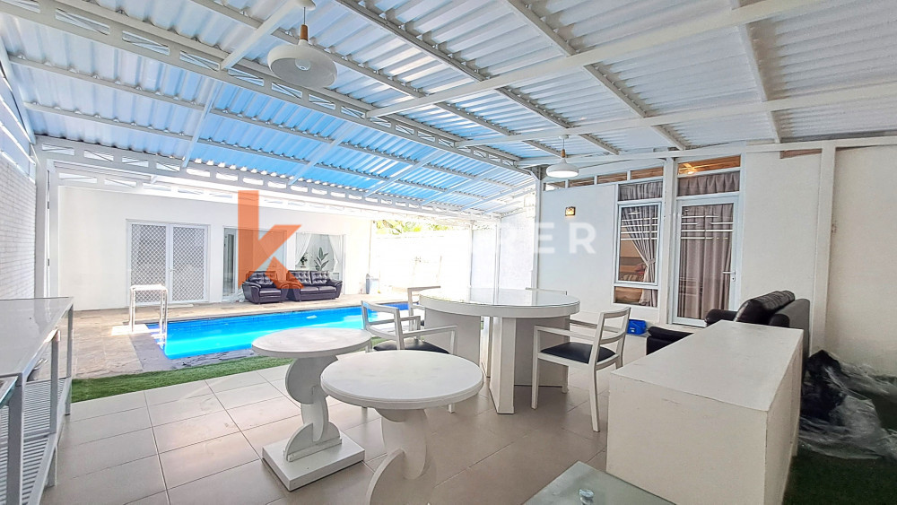 This Four Bedroom Villa located nearby wide road access to or from airport by toll road, close to sauthern beach of bali island for couple or group. Boasting an outdoor swimming pool, a garden, a terrace and free private parking for two cars and motorbikes. The air-conditioned villa consists of four bedrooms, a living room, a fully equipped kitchen with a fridge and an oven, and four bathrooms with a bidet and a shower.Â