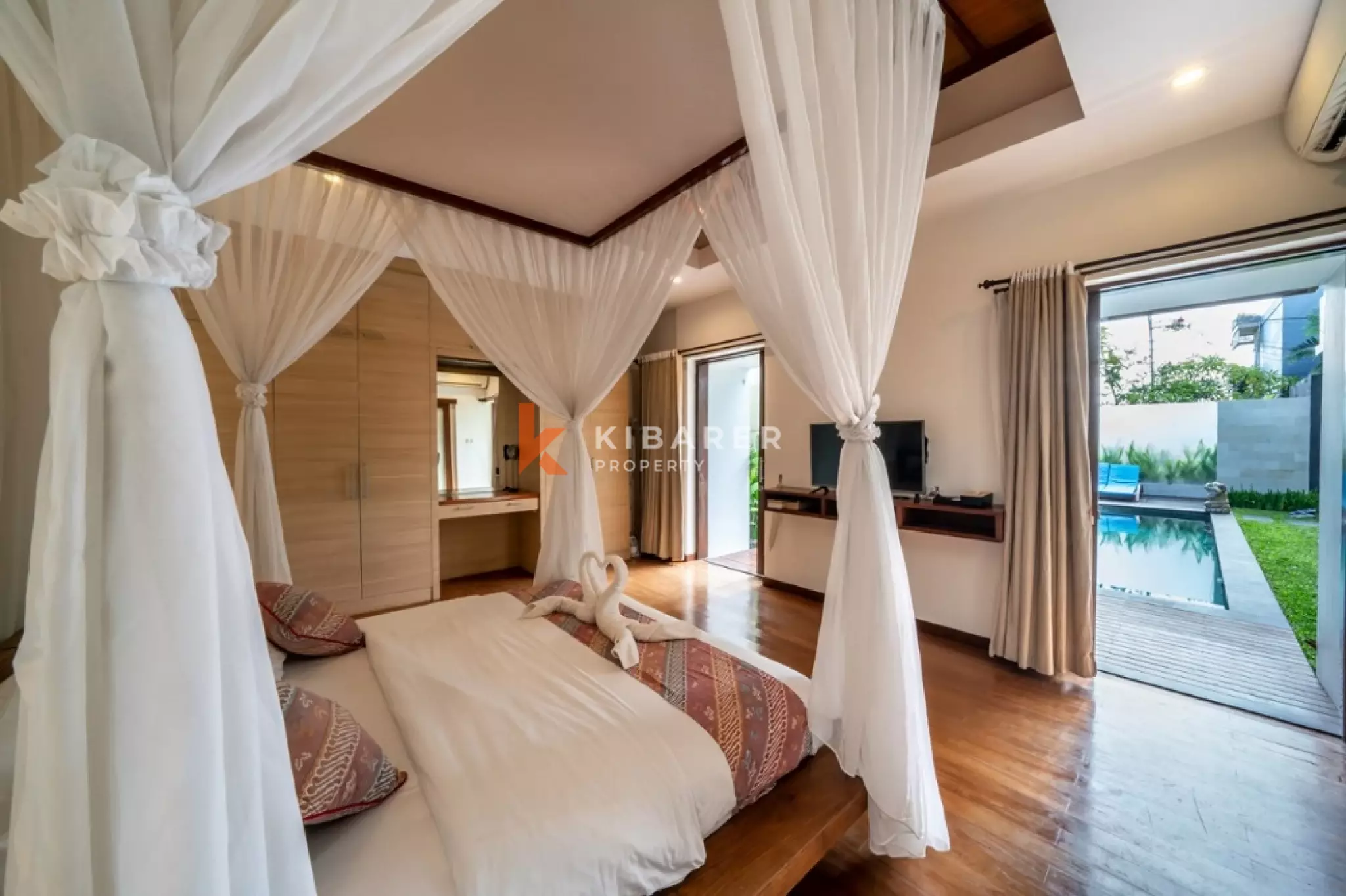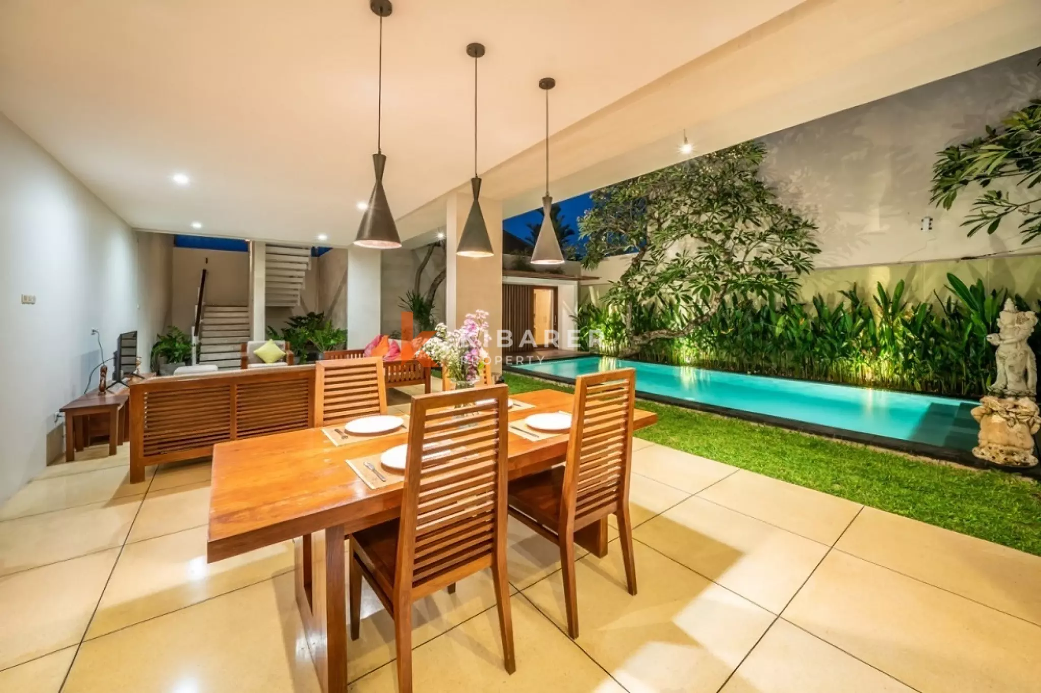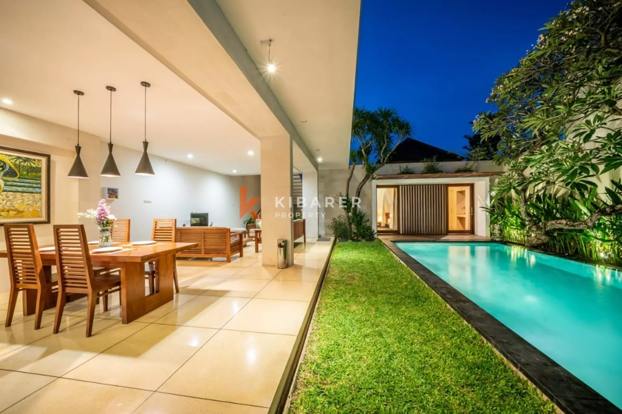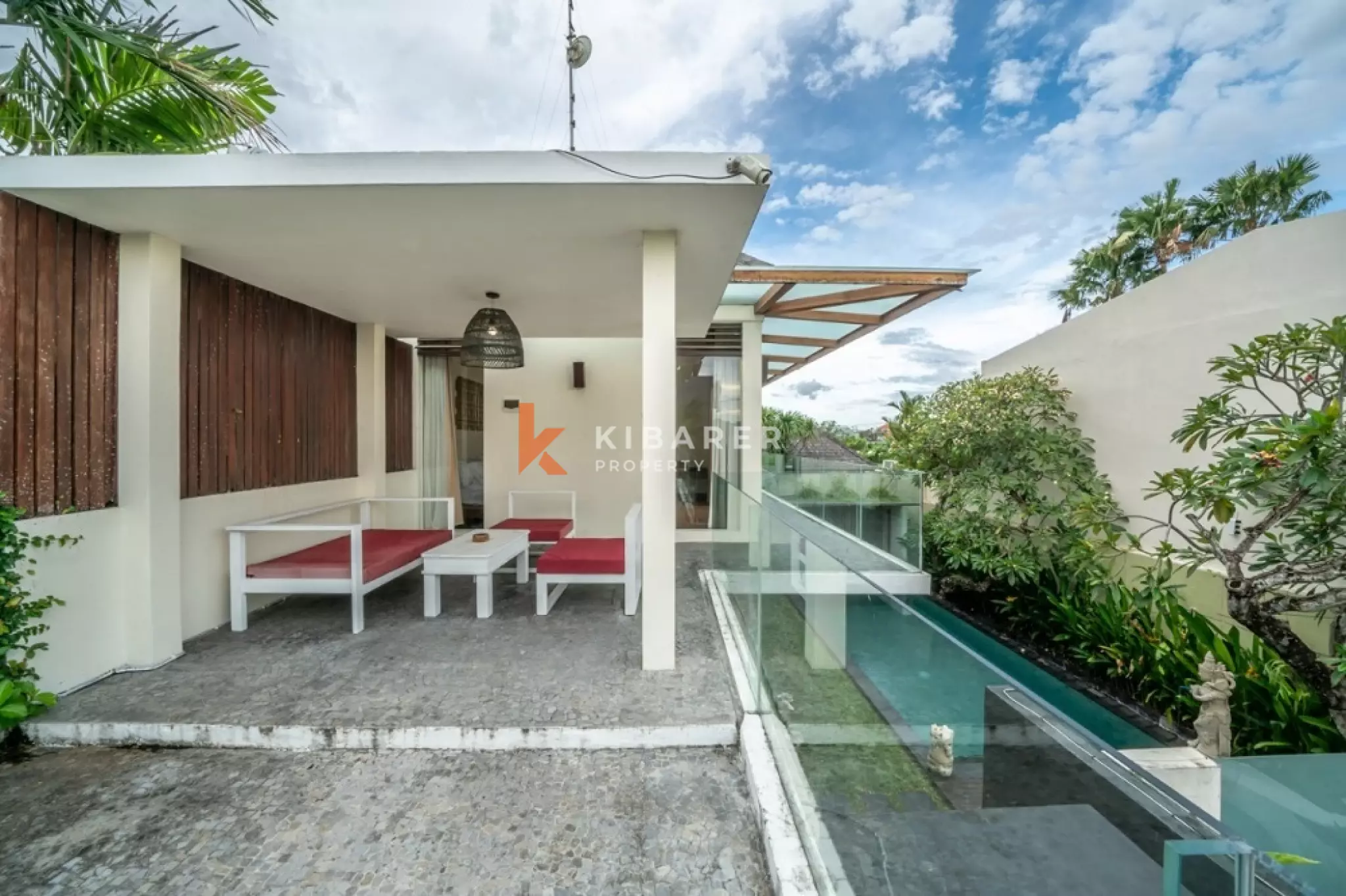 Nestled in the heart of Kerobokan, this charming villa combines comfort and practicality, making it an ideal long-term home. Built on 2 are of land, the villa comes fully furnished with two cozy bedrooms, each with its own private bathroom. The enclosed living room flows seamlessly into the dining and kitchen area, while a guest toilet adds extra convenience. A private swimming pool creates a refreshing outdoor escape, perfectly complemented by a storage room to keep your home organized.
