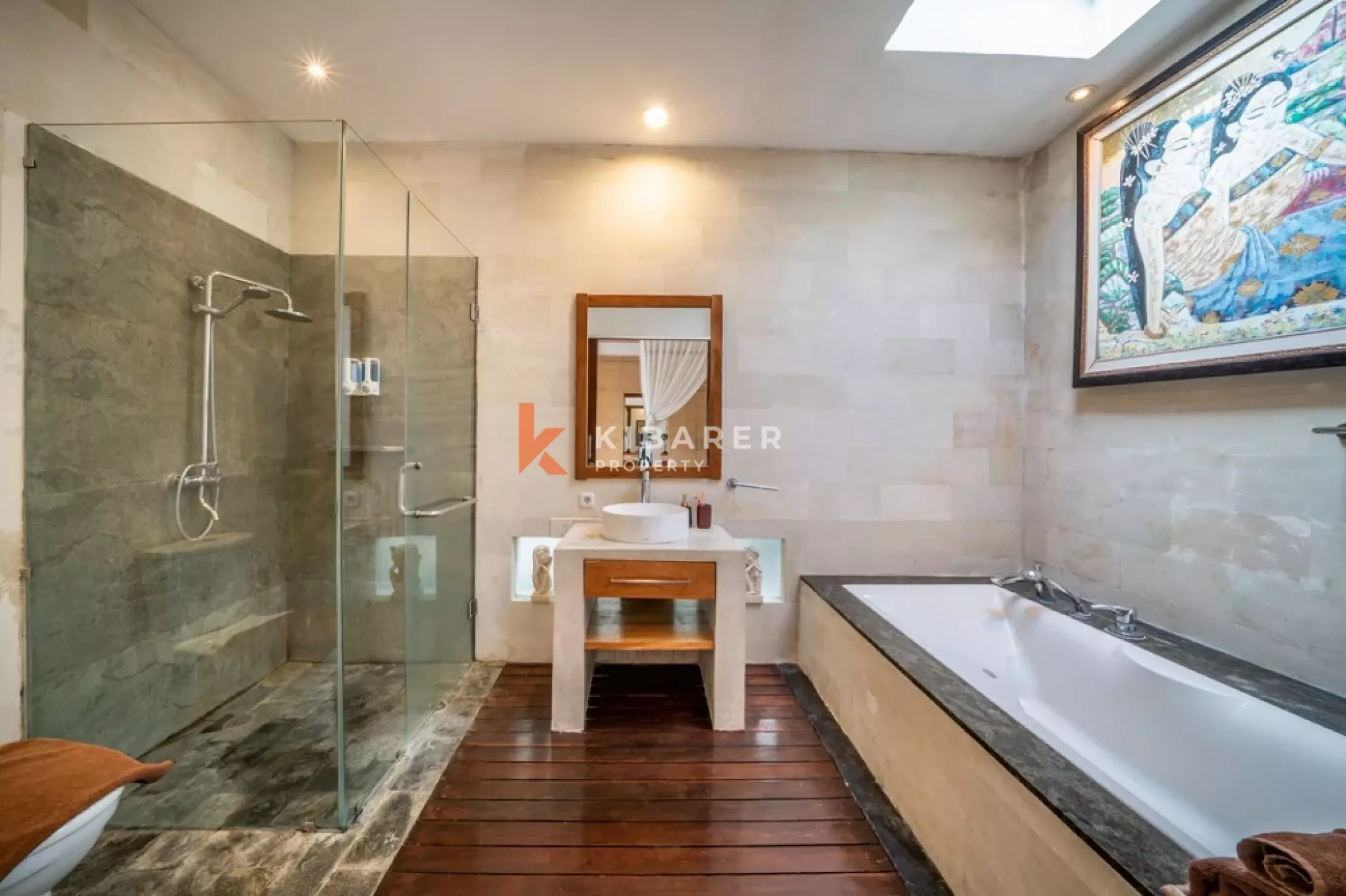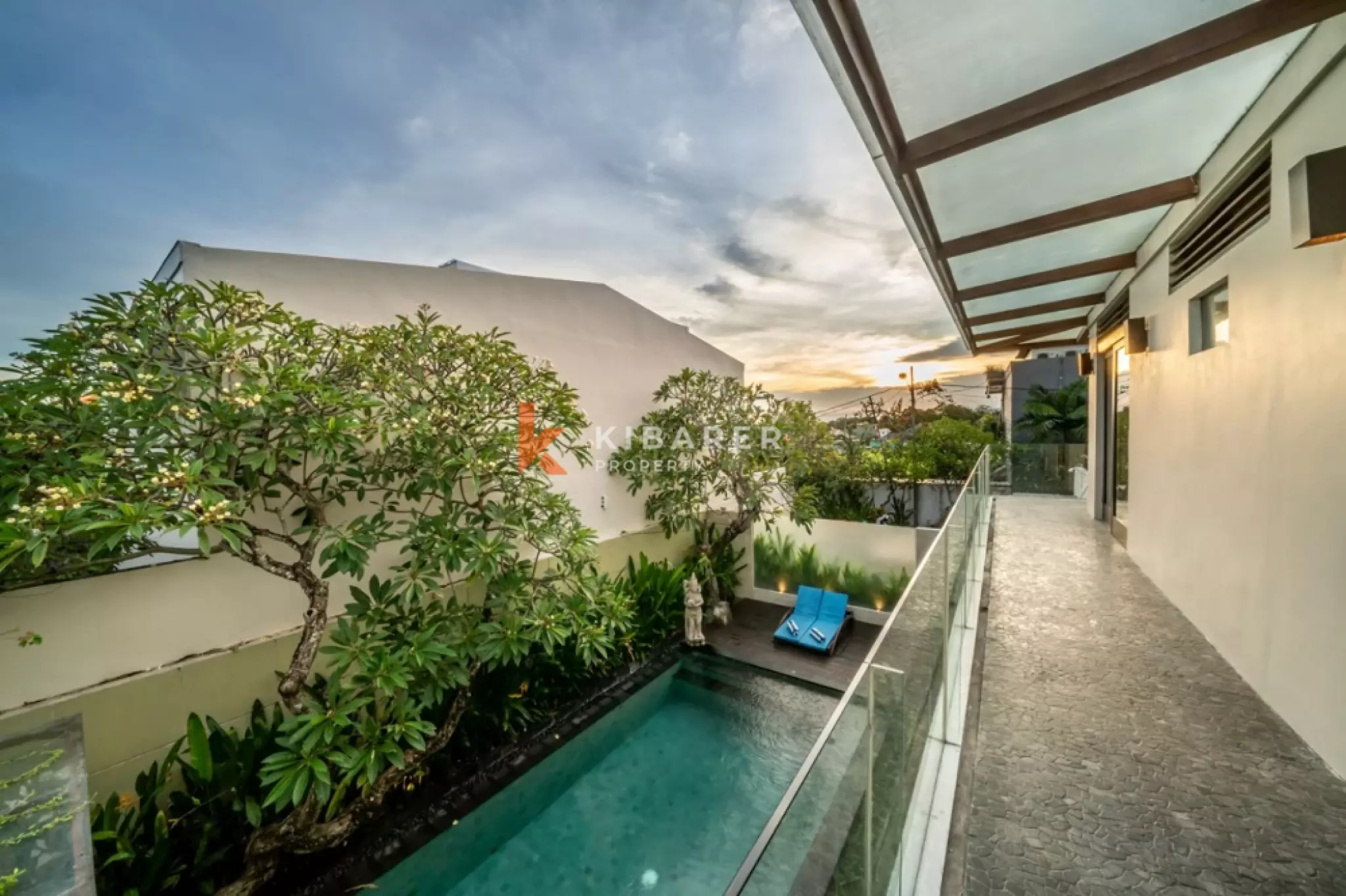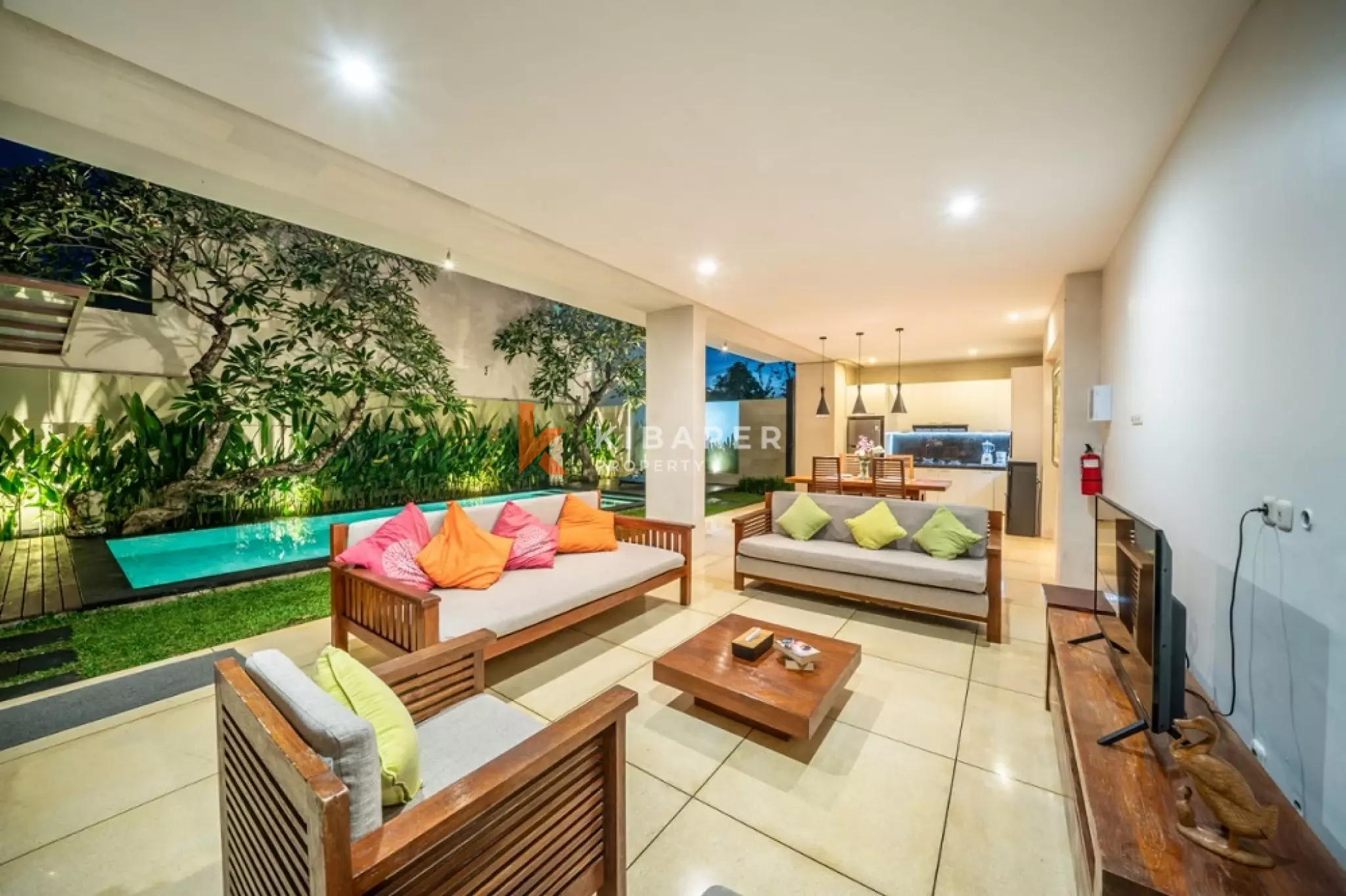 Nestled in the heart of Kerobokan, this charming villa combines comfort and practicality, making it an ideal long-term home. Built on 2 are of land, the villa comes fully furnished with two cozy bedrooms, each with its own private bathroom. The enclosed living room flows seamlessly into the dining and kitchen area, while a guest toilet adds extra convenience. A private swimming pool creates a refreshing outdoor escape, perfectly complemented by a storage room to keep your home organized.