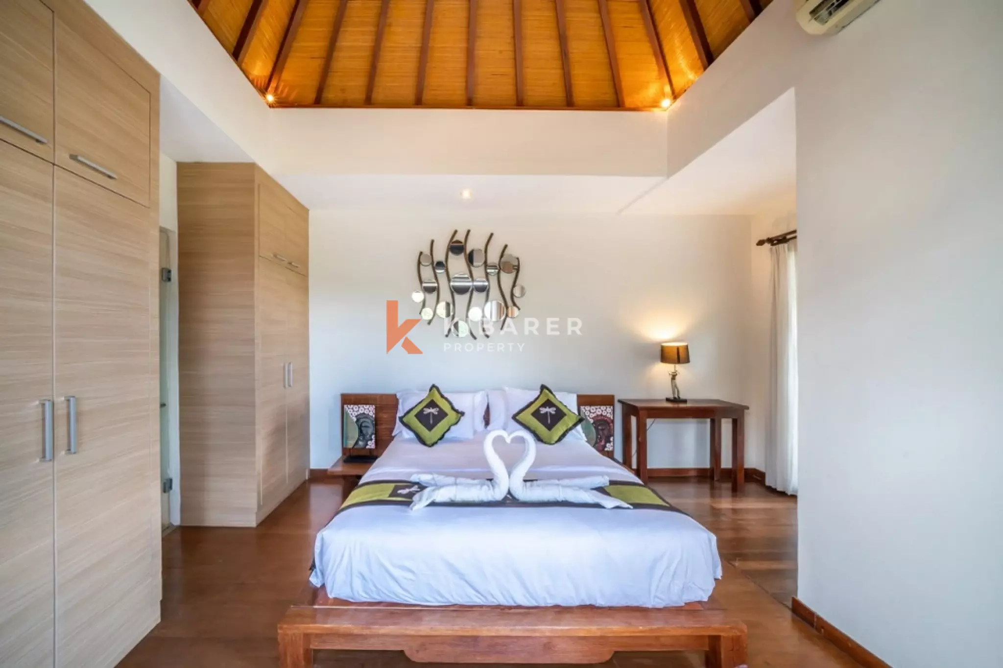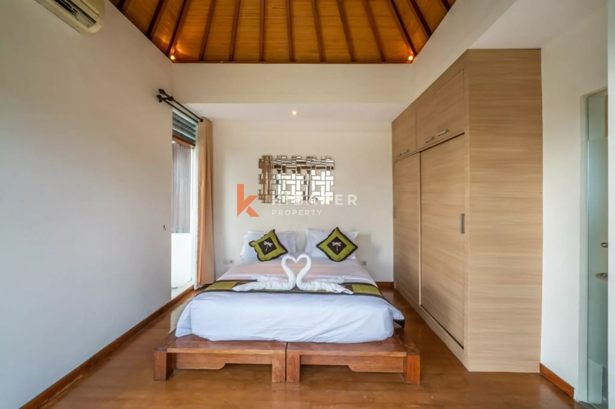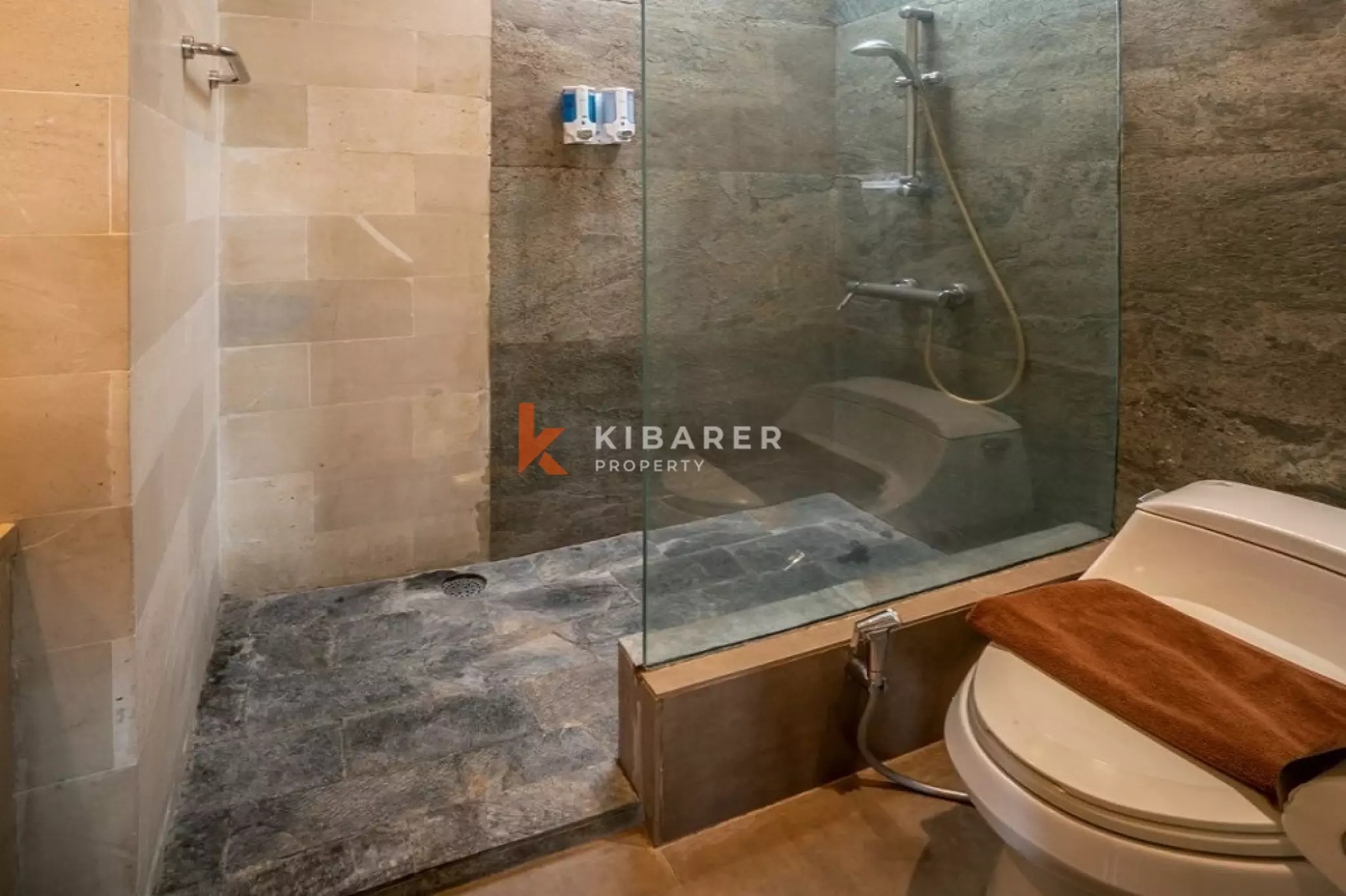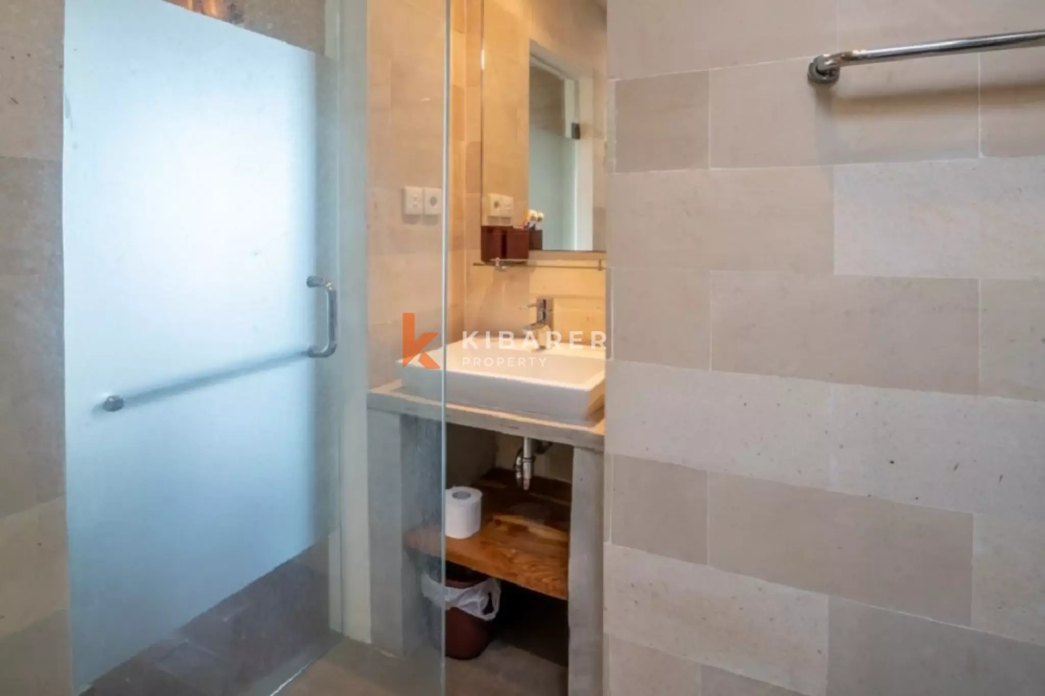 Nestled in the heart of Kerobokan, this charming villa combines comfort and practicality, making it an ideal long-term home. Built on 2 are of land, the villa comes fully furnished with two cozy bedrooms, each with its own private bathroom. The enclosed living room flows seamlessly into the dining and kitchen area, while a guest toilet adds extra convenience. A private swimming pool creates a refreshing outdoor escape, perfectly complemented by a storage room to keep your home organized.