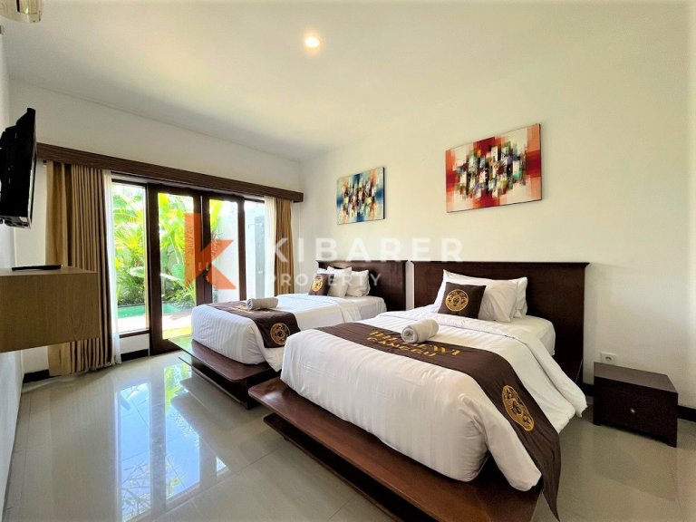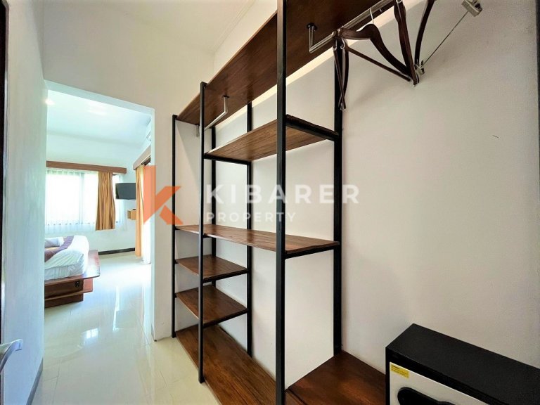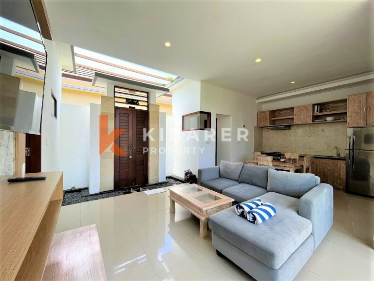 Nestled in the heart of Canggu's Batu Bolong district, this duplex apartment offers a luxurious retreat just a 5-minute walk from the beach. It's ideally located near Canggu's iconic spots and boasts developed infrastructure for seamless living. Services include cleaning twice a week and 24/7 security for peace of mind. Enjoy exclusive facilities such as a fully equipped gym, a rooftop with stunning ocean views, and underground parking for bikes. Modern conveniences like a washing machine, dryer, and fast Wi-Fi enhance your stay. Inside, the apartments feature a fully equipped kitchen with a full set of dishes, oven, hob, microwave, refrigerator, and water cooler. Additional amenities include an automatic washing machine, clothes dryer, secure safe, huge Smart TV, powerful air conditioner, spacious wardrobe, king-size bed, dedicated workspace, and a rooftop chill-out area. Whether you're relaxing indoors or exploring Canggu, this apartment provides the perfect blend of comfort, convenience, and luxury in one of Bali's most desirable locations.