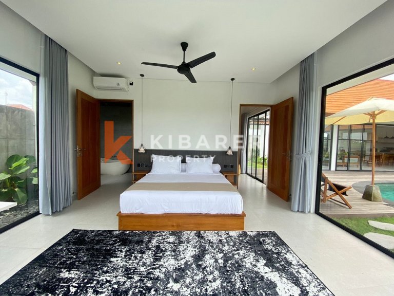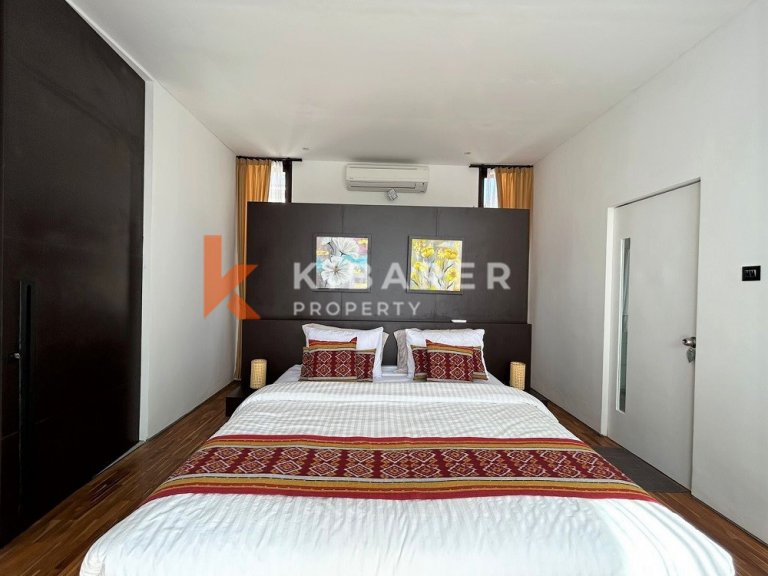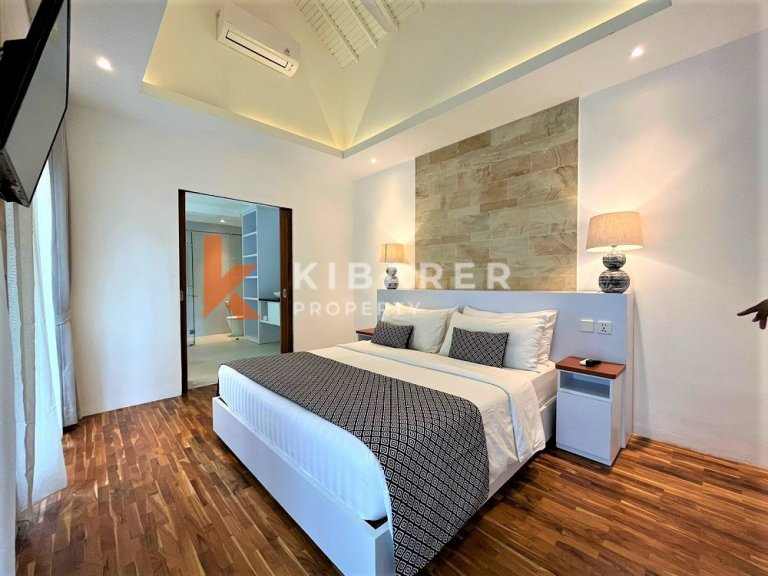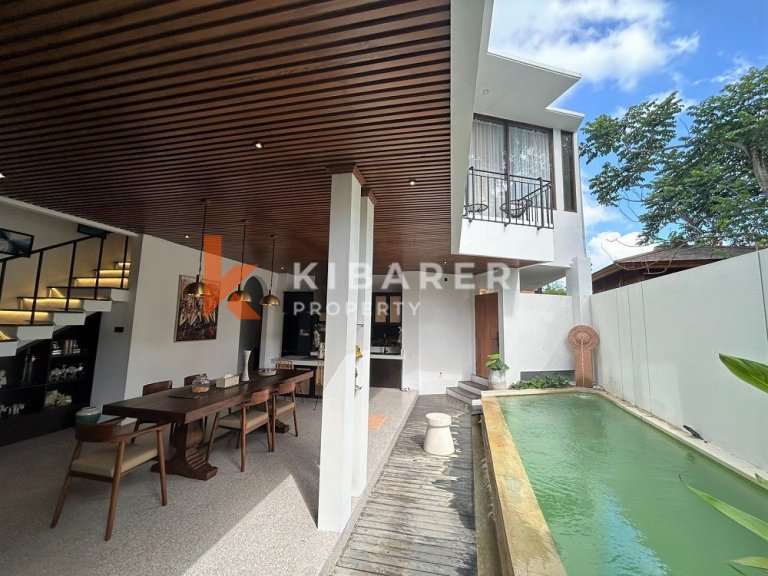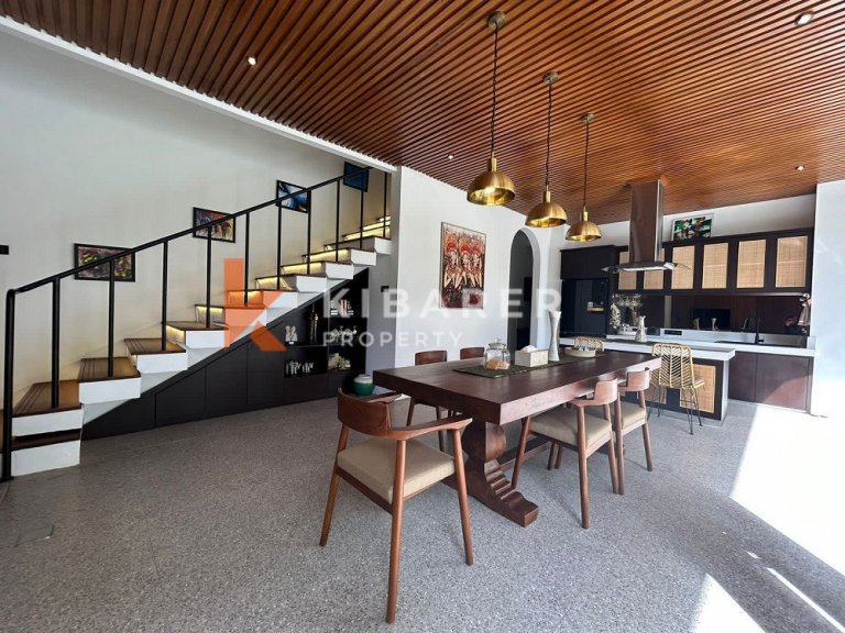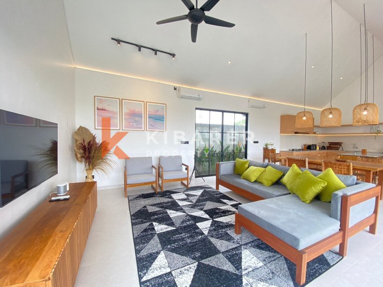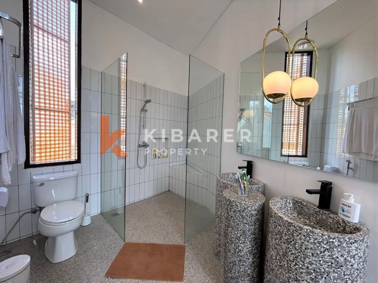 Nestled surroundings of Tumbak Bayuh, Pererenan, this luxurious two-storey villa combines modern design with thoughtful comfort across 365 sqm of stylishly built space on a 300 sqm plot. Featuring four fully furnished bedrooms, each with a private en-suite bathroom and air conditioning, this home is a perfect blend of convenience and elegance. The master suite includes a bathtub for added indulgence, while the enclosed living room flows into a sleek kitchen and dining area complete with an oven for baking, flat-screen TV, and a guest toilet—ideal for hosting and relaxation.