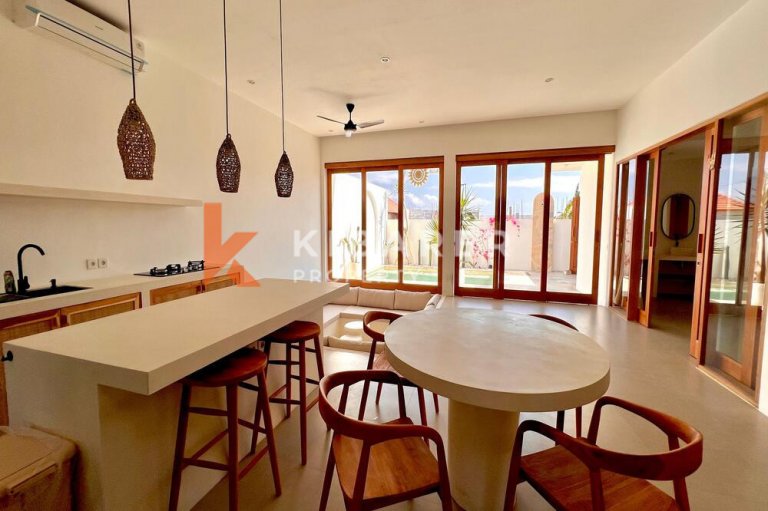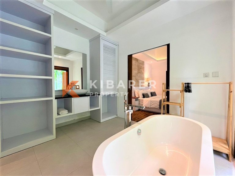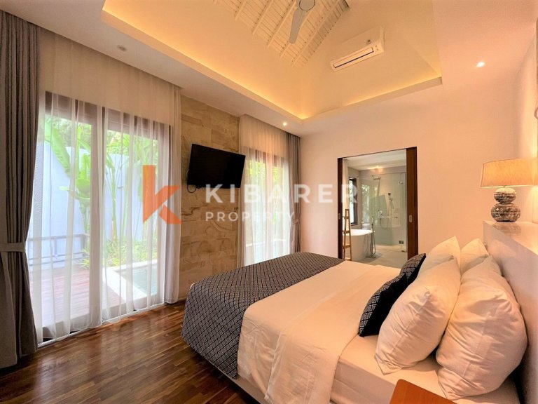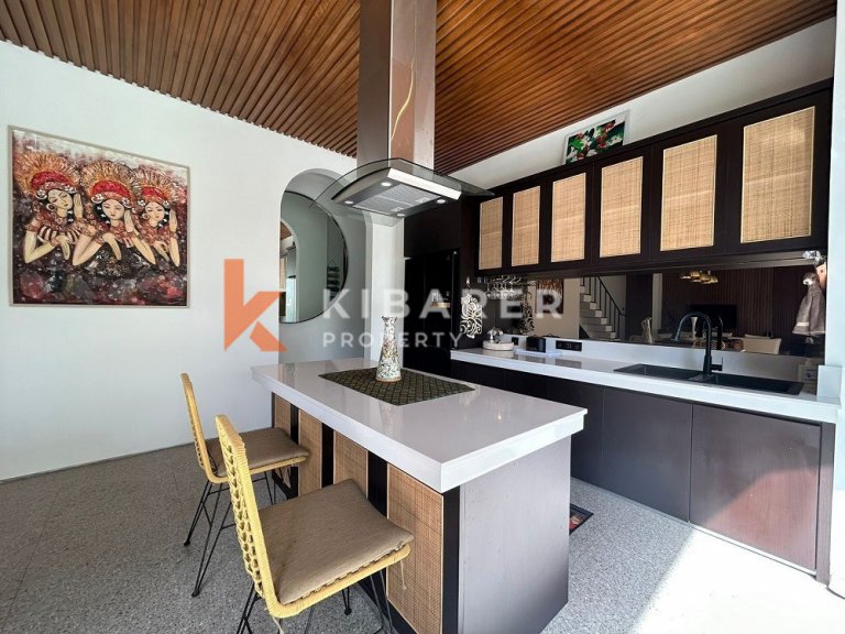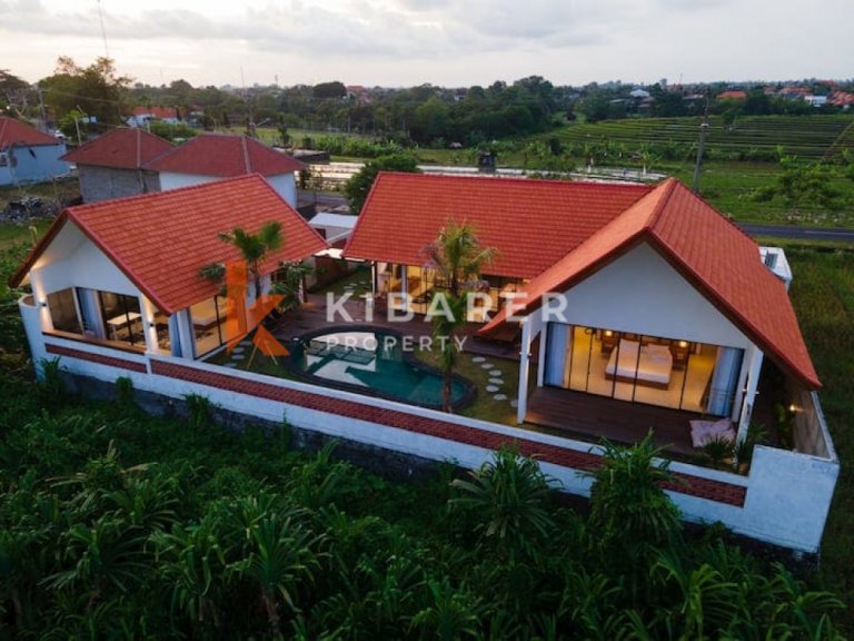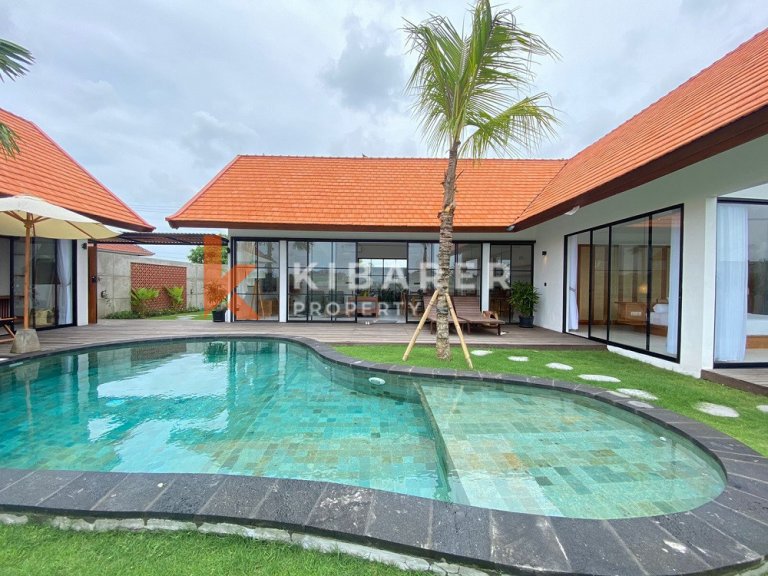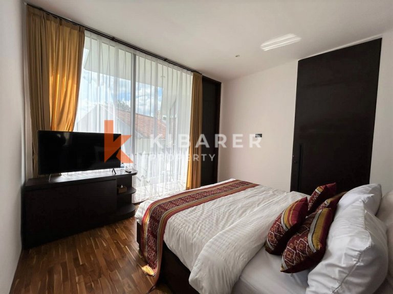 Nestled surroundings of Tumbak Bayuh, Pererenan, this luxurious two-storey villa combines modern design with thoughtful comfort across 365 sqm of stylishly built space on a 300 sqm plot. Featuring four fully furnished bedrooms, each with a private en-suite bathroom and air conditioning, this home is a perfect blend of convenience and elegance. The master suite includes a bathtub for added indulgence, while the enclosed living room flows into a sleek kitchen and dining area complete with an oven for baking, flat-screen TV, and a guest toilet—ideal for hosting and relaxation.