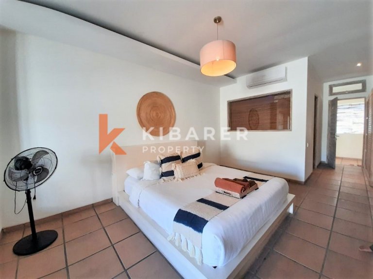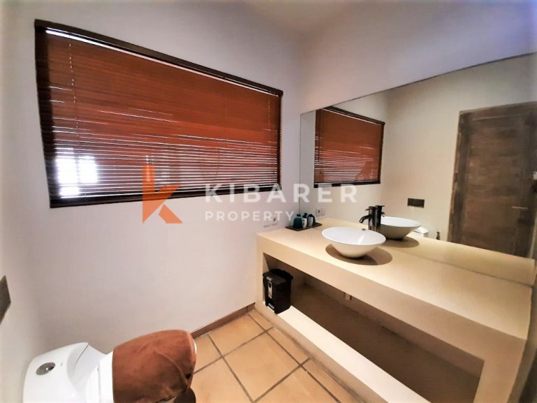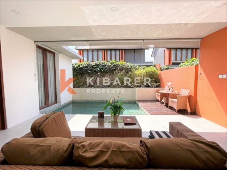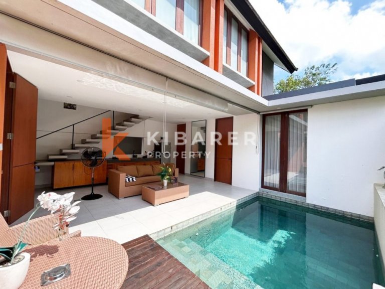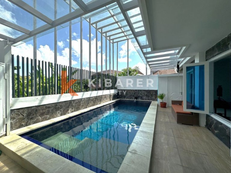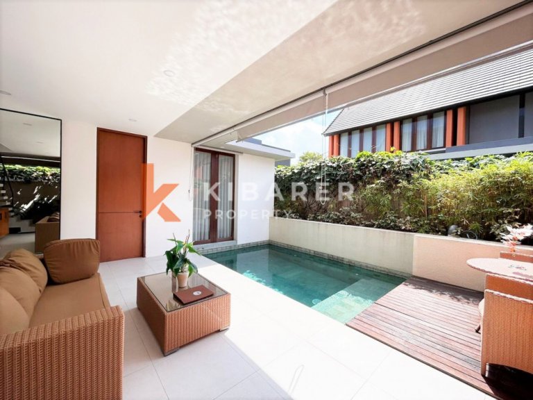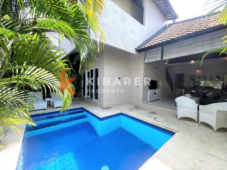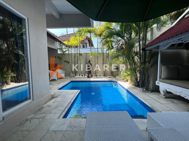 Beautiful two bedroom villa with private pool and two ensuite bathrooms that located at the heart of Seminyak and within 15 minutes walking distance to Petitenget Beach. This very clean, quite and peaceful, less than 5 minutes to a myriad of fine Restaurants & Cafes such as Ultimo, La Favela, The Goat, Red Carpet, Corner House Seminyak and many more. Close proximity to Seminyak's notorious beach clubs such as KuDeTa, Ms Sippy & Potato Head this villa offers the perfect secluded space escape and reconnect at the very same time. This villa have two master bedrooms featuring super king size beds, one master bedroom on the 1st floor and another one have a roof top on the 2nd floor. Perfect for a holiday or long term living.Â