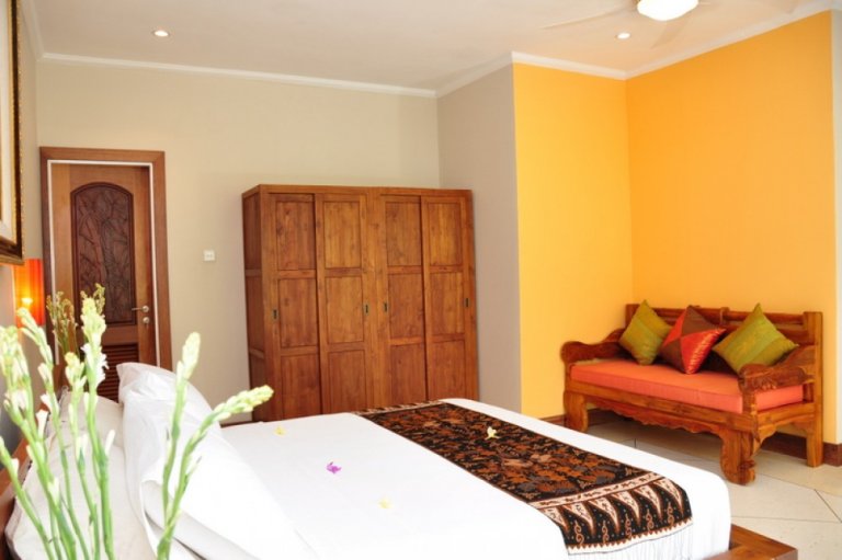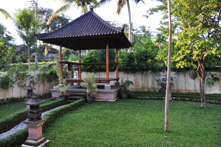 This villa are located on a hill in the northern part of central Ubud, just 5 minutes from the popular Parq Ubud complex, where concerts and events take place and 15 minutes from the famous Tegallalang rice terraces. There is no traffic noise here, as the houses are situated at the end of a quiet lane, atop an 8 meter high hill overlooking the jungle. The site is reinforced with a concrete retaining wall around the perimeter.