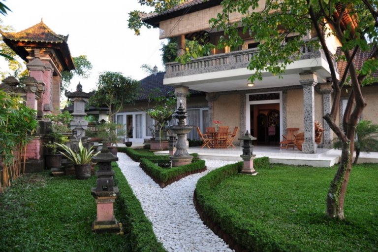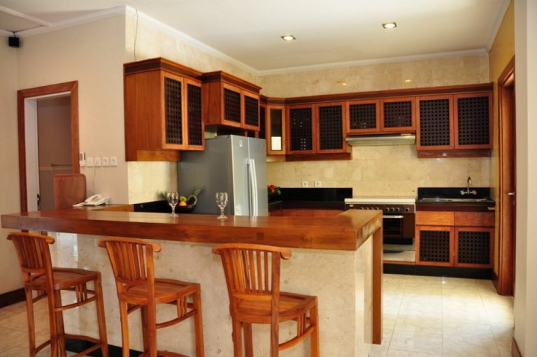 The facade of the villa is finished with natural gray stone of volcanic origin, which does not require further painting or maintenance. All wooden elements of the facade are made of Ulin tropical wood, also called ironwood because of its maximum density and resistance to termites and other insects. Therefore, this tree does not require replacement even after more than 30 years.